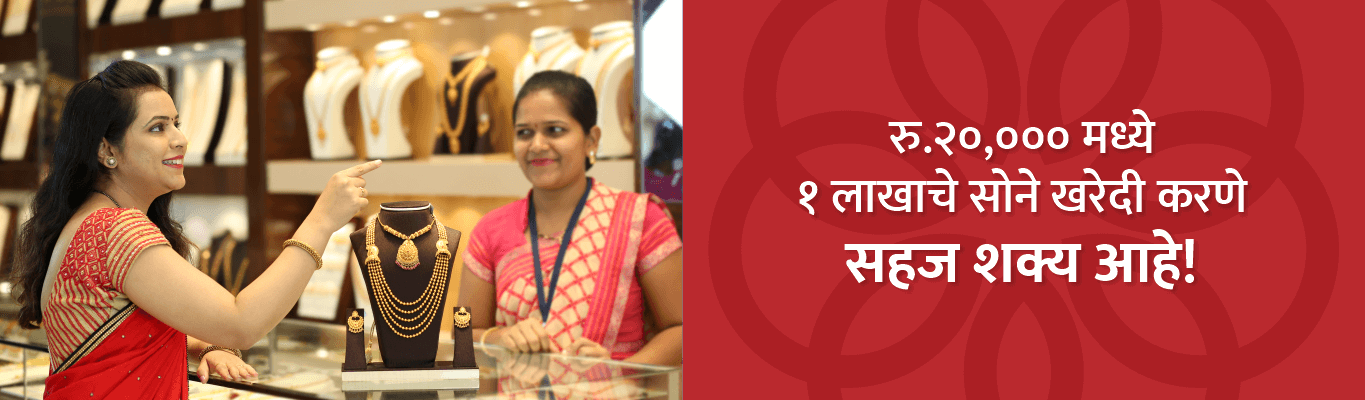 सोन्याचे भाव दिवसेंदिवस वाढत चालले आहेत. मुलीच्या लग्नासाठी किंवा गुंतवणुकीसाठी म्हणून सोने घेणे सुद्धा महाग झाले आहे. पुढील काळात सोन्याचे भाव अजून वाढतील. पण आपण मात्र आत्ताच, आपल्याकडे कमी पैसे असले तरी सोने खरेदी करून ठेवू शकतो, ते 'सोने खरेदी कर्ज' योजनेच्या मदतीने. या योजनेअंतर्गत आत्ता फक्त ₹ २०,००० भरून १ लाखांपर्यंतचे सोने खरेदी करा आणि उरलेले पैसे नंतर हफ्त्यांमध्ये भरा.