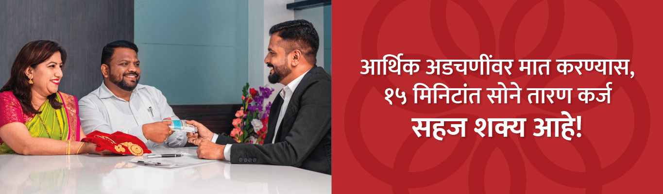 अडचण कधीच सांगून नाही येत. मोठ्या रकमेची गरज कधीही पडू शकते. अशा वेळेस आपण त्या रकमेसह तयार असणे गरजेचे असते, आणि अशा अचानक आलेल्या अडचणीवर मात करायला आर्थिक पाठिंबा देते "सोने तारण कर्ज" या योजनेमध्ये तुम्हाला १५ मिनिटांत सोन्यावर कर्ज मिळते आणि त्वरित आर्थिक अडचण दूर करता येते.