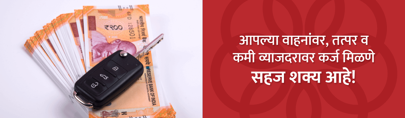 एखादे मंगल कार्य असो किंवा अचानक येणारी आर्थिक अडचण! पैश्यांची गरज तर भासतेच. आणि अशावेळेस ती दूर करायला आपले वाहन देखील आपली साथ देते. वाहन तारण ठेऊन, त्या बदल्यात कमीत कमी व्याजदरात जास्तीत जास्त आणि तत्पर कर्ज मिळते.